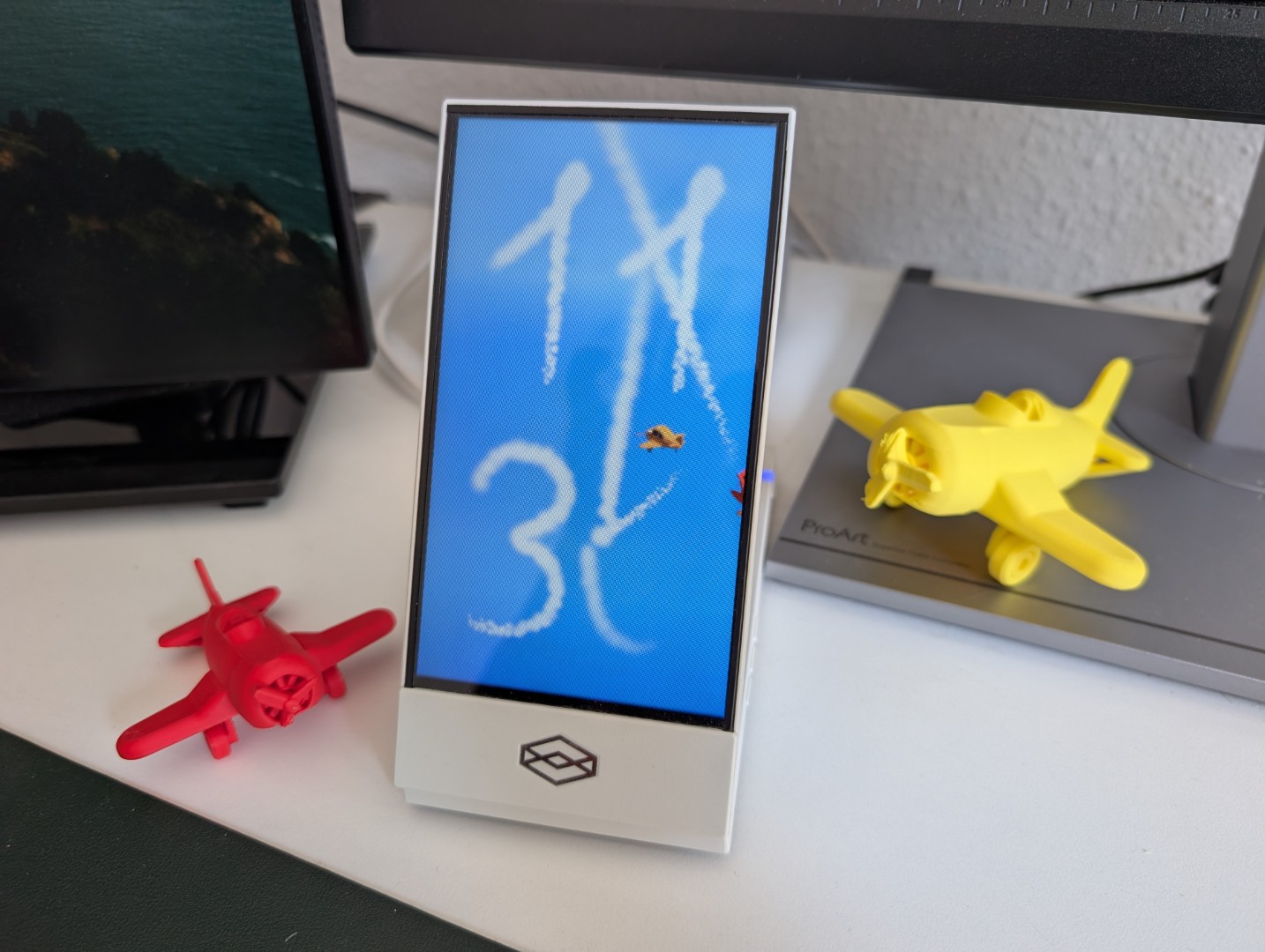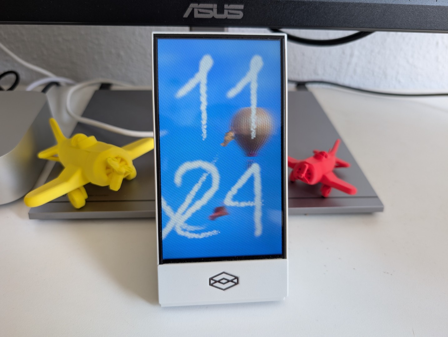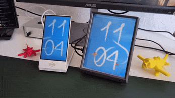 Don't lose track of time while you browse, read or play and enjoy the sight of small planes flying around and drawing the time with their trails on your Looking Glass Display.